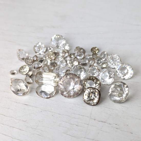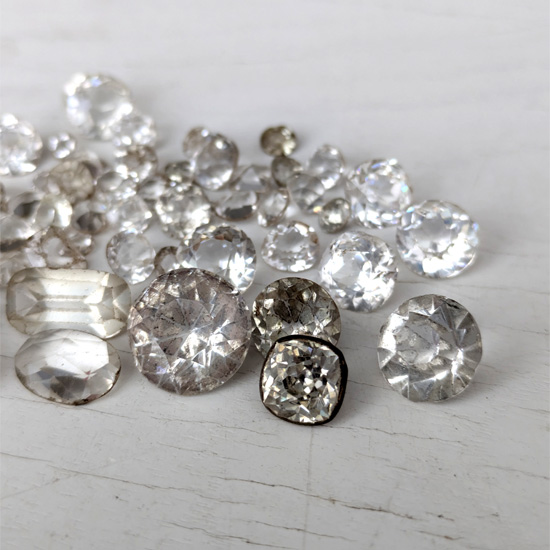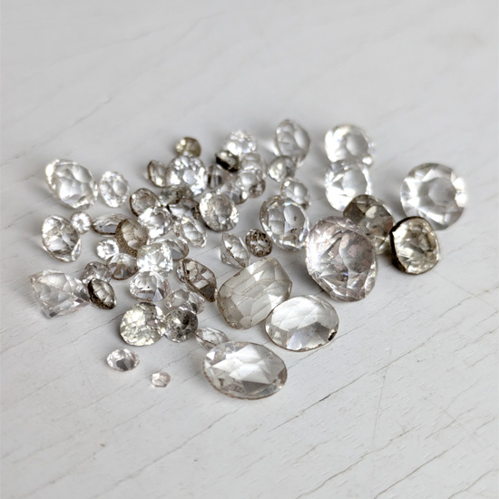 ラウンド、クッション型を基本にその他の形の物もあり、大きな物からかなり小さなルースまで入っています。手仕事の時代の繊細なカットで美しく輝くきらめきと、アンティークのこっくりとした風合いがあります。