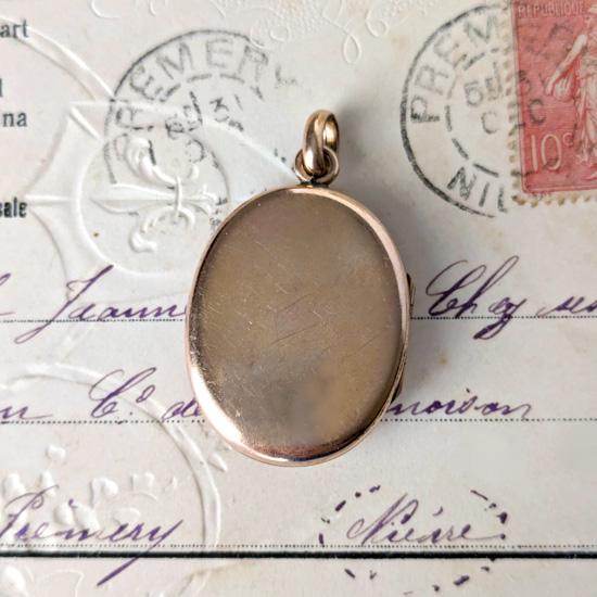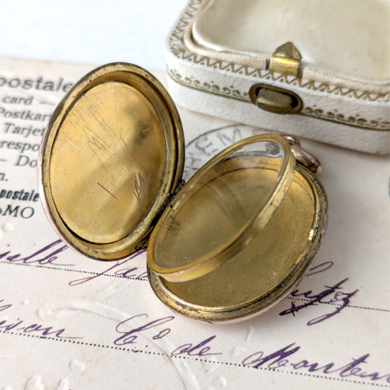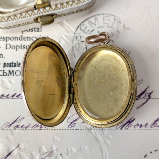 内側はガラス張りのロケットになっており、カバーガラスも縁にかけて湾曲した質の高い物が使われており、傷なく大変綺麗です。内側外側と開閉はスムーズにしっかりとしています。チェーンは付属しません。フレンチジェットはジェムテスターでテスト済。