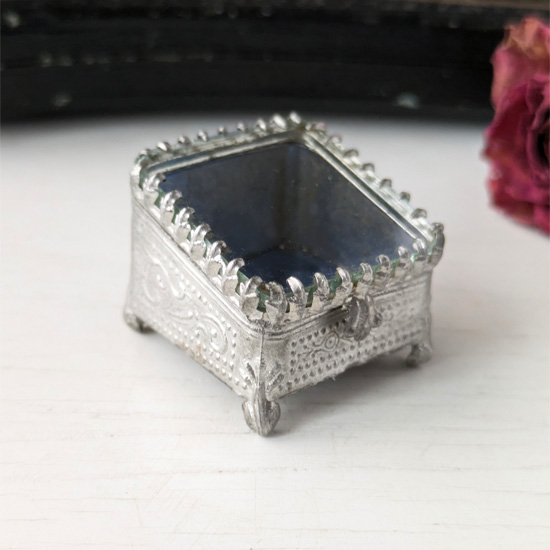 こちらはおそらくそのボックスのおまけで作られた希少品です。ちょうど指輪ひとつ分のサイズというミニ具合が大変かわいらしく、ベベルガラスボックスコレクターの方に大変おすすめです。