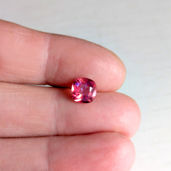 朱赤の中にちらちらとほの青く見えるシラーが神秘的なドラゴンズブレス。希少なカットありのクッションスクエア型。1900年中頃西ドイツ製の未使用ビンテージ。