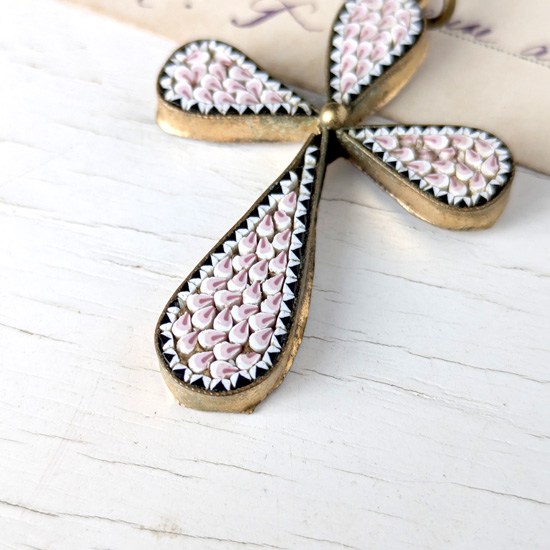 桃色マイクロモザイクの十字架ペンダント