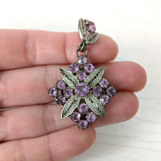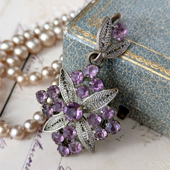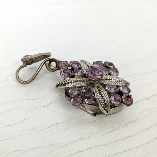 アメジストガラスのフィリグリーロケットペンダント