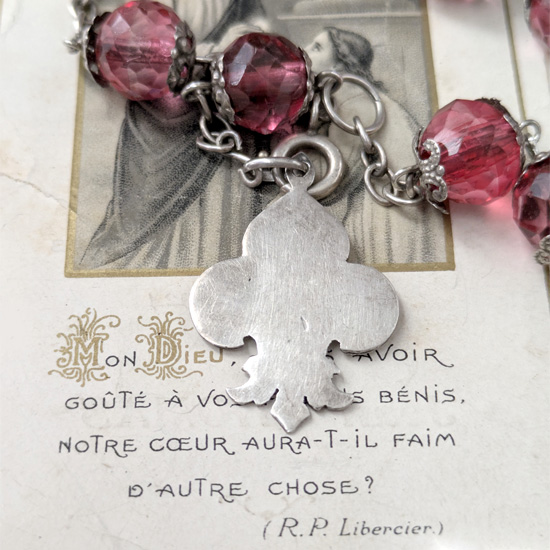 ガラスのロザリオのカラーはさまざまありますが、このような鮮やかなピンク色が使われた物は大変珍しく、またディゼンヌとしての物は当店も初めてです。