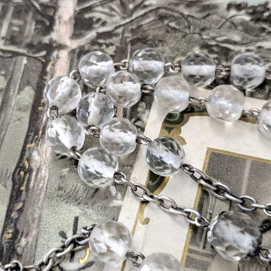 クロスに近いビーズの一粒がロストしていますが、多面に細かくカットされたビーズの状態も良く銀のキャップのデザイン性も優れたロザリオです。頭から被る事が可能でネックレスとしてもご利用いただけます。