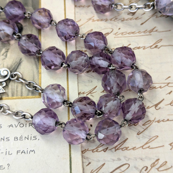 アンティークロザリオで鉱物のビーズが使われた物は滅多にありません。おそらく当時もガラスビーズの物より手にするのは容易ではなかった事でしょう。